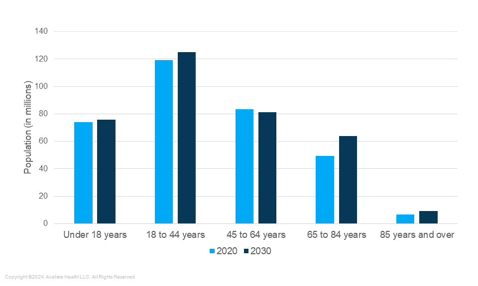 Figure 1. US Population by Age Group (2020 vs. projected 2030)