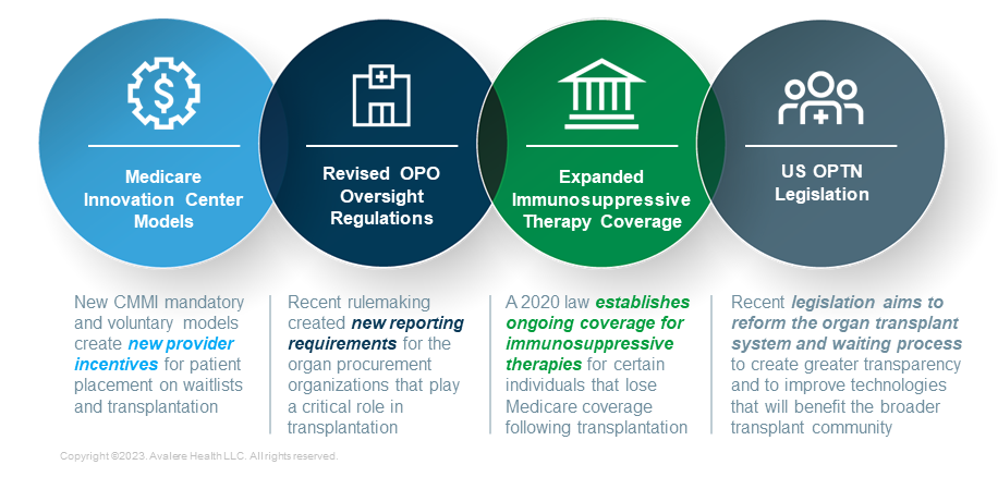 Both the Trump and Biden administrations have introduced policies and initiatives to support access to transplantations. The Advancing American Kidney Health initiative, launched by the Department of Health and Human Services in 2019, was the initial driver of change in the broader kidney care space, creating new policies and payment models to reduce risk of kidney failure and improve access to and quality of treatment options. Specific details of these policies and additional activities are outlined below.