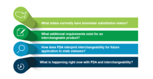 This report is not an interpretation of individual product interchangeability, as designated by the FDA, nor is it a recommendation for substitution or a guarantee of insurance coverage. It does not constitute legal advice or opinion; rather, it is for general informational purposes only. Until the FDA designates a biosimilar as “interchangeable,” any state statute regarding substitution based on interchangeability by a pharmacist does not yet apply. However, this report can serve as an educational tool, providing insights into interchangeability from federal and state perspectives. It is intended to help stakeholders navigate the complexities of biosimilar substitution.