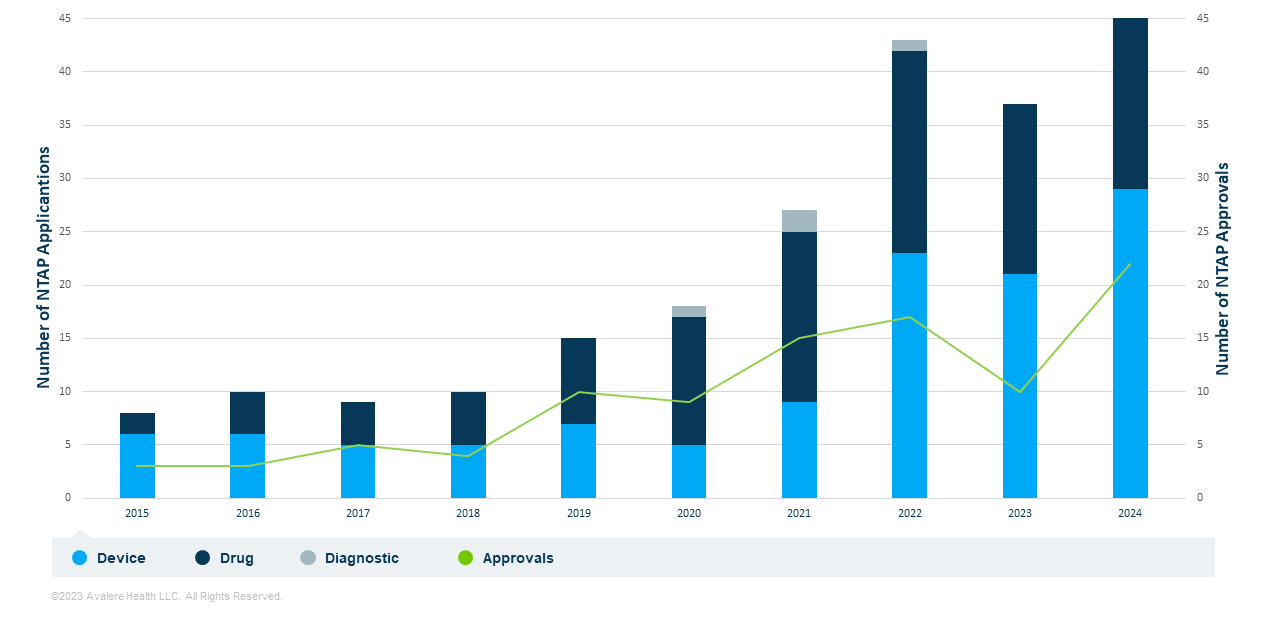 In each IPPS rulemaking cycle, CMS assesses technologies that have been submitted for potential New Technology Add-on Payment (NTAP) status and reconsiders the eligibility for technologies already so designated. NTAPs are additional Medicare payment to hospitals that cover excess costs associated with a specific stay involving an NTAP-designated therapy (i.e., costs that exceed the bundled payment amount for the case). Over the past decade, an increasing number of manufacturers have sought NTAP status for their technologies, and CMS has created new pathways for technologies to qualify for this designation.