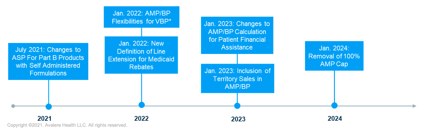 The intersection of upcoming changes to drug pricing metrics will require new methods of calculating and reporting government pricing with implications for net pricing and contracting strategies.As a result of policy changes enacted over the last year, several key drug-pricing metric changes are set to take effect in the next 3 years, with potential impacts on manufacturer drug pricing, price reporting, and rebate liability. As manufacturers and other stakeholders advance pricing strategy planning for the years ahead, it will be important to prepare for the various pricing changes outlined below and the interactions that these changes may have in aggregate.