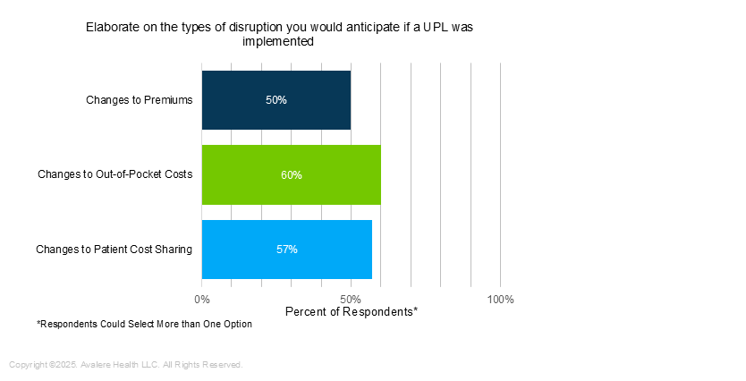 Respondents anticipate that UPLs will impact formulary design, cost sharing, rebating, and pharmacy and provider reimbursement, all of which can impact patients’ access to medications. Respondents highlighted potential costs to plans stemming from UPL implementation, which could put pressure on premiums and contractual arrangements with pharmacies and providers.