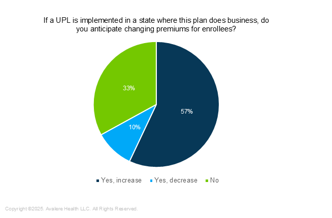 Respondents also answered questions about the potential patient impacts of UPLs on premiums, benefit design, and formularies. Overall, 60% of respondents expected changes to OOP costs and 50% expected increased copays or coinsurance on a UPL drug (Figure 2).